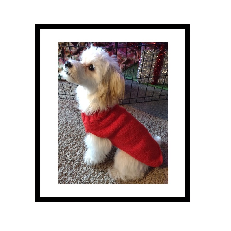 Great pattern for a beginner or those that have some knowledge of knitting, including knit, purl and increasing. The finished samples of this dog sweater is done in 'Read Heart' medium weight 4 ply yarn.